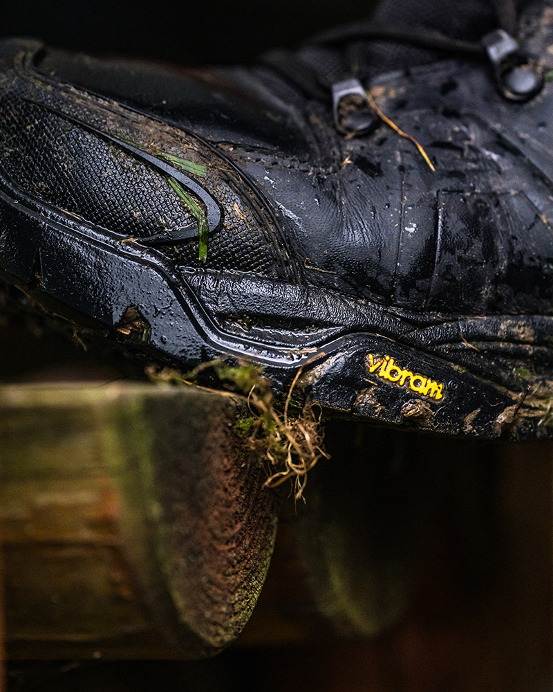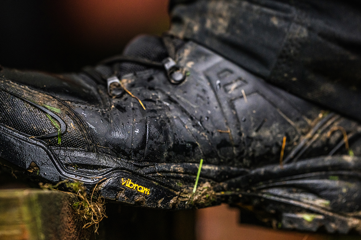 - Protiskluzová podrážka: Podešev Vibram s testovanou SRC vlastností obstála na kluzkém terénu. Obuv neklouzala ani při rychlých přesunech nebo naopak při zastavování.